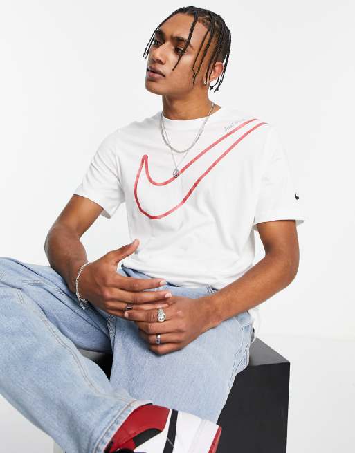 Camiseta blanca y roja con logo grande de Nike Very well made.