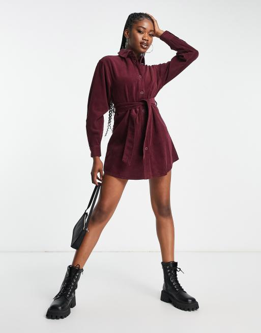 Vestido camisero color granate con cintur n de pana de ASOS DESIGN Very well made.