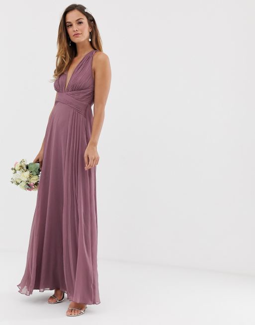 Vestido largo de dama de honor con dise o drapeado cuerpo fruncido y cintura cruzada de ASOS DESIGN Very well made.