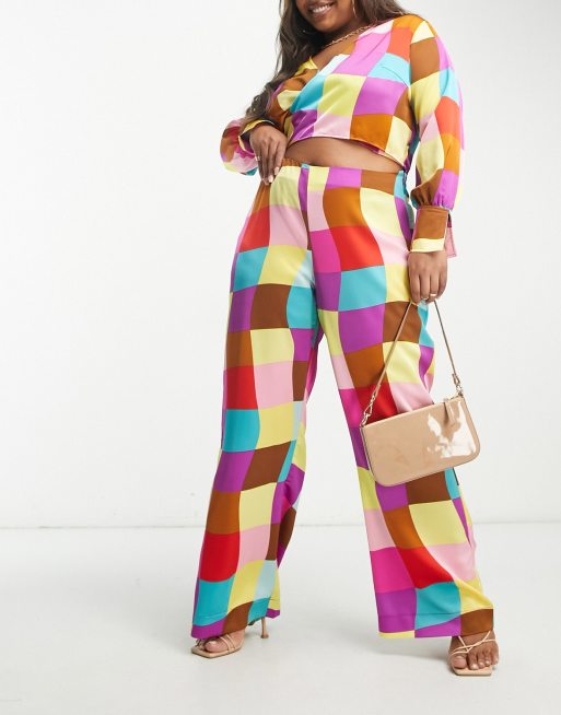 Pantalones a cuadros de colores de pernera ancha de Something New Curve parte de un conjunto Very well made.