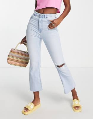 Stradivarius crop flare jeans in medium blue Compare Closer Very well made.