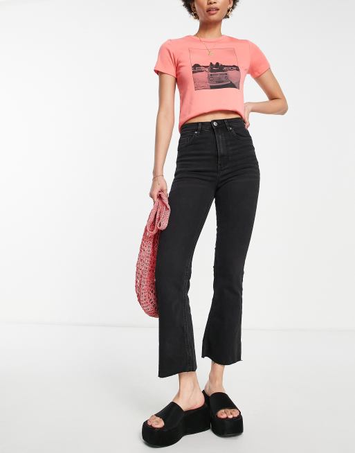 Stradivarius Tall crop flare jean in black Very well made.