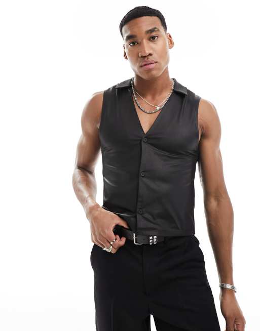 Polo negro ajustado sin mangas con botones de cuero sint tico de Very well made.