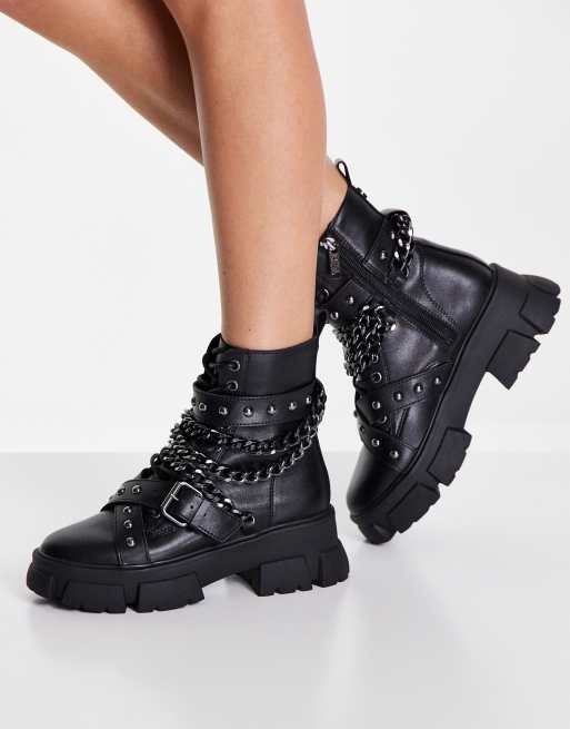 Steve Madden Tranquil Leren laarzen met dikke zool en kettingdetails in zwart Very well made.