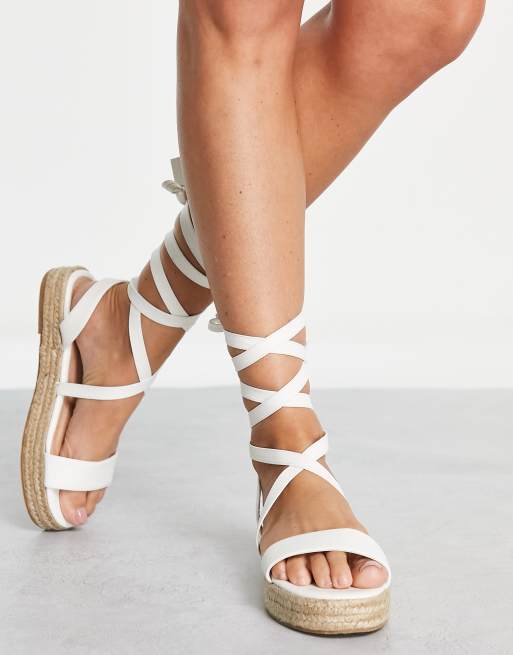 Truffle Collection Espadrille sandalen Met Strikbanden in het Wit Very well made.