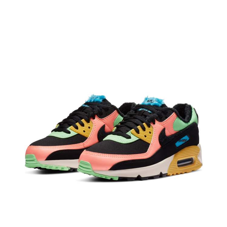 Nike Air Max 90 Sneakers met imitatiebont in zwart en fluorescerende kleuren Very well made.