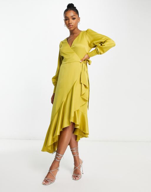 Style Cheat Midi wikkeljurk met ruches in chartreuse ASOS Very well made.