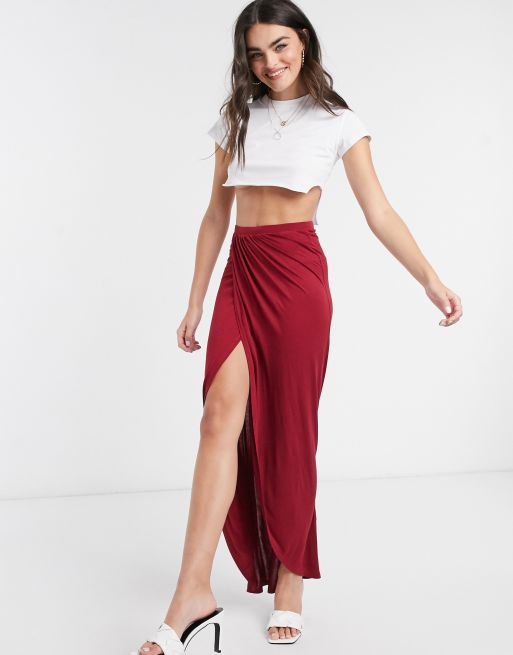 ASOS DESIGN Lange rok met overslag van jersey in bordeauxrood Very well made.