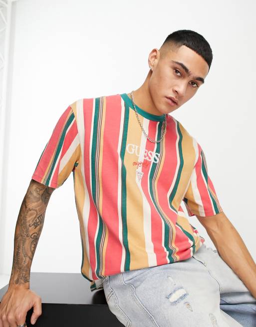 Guess Originals Gestreept T shirt met logo op de borst in oranje en groen Very well made.