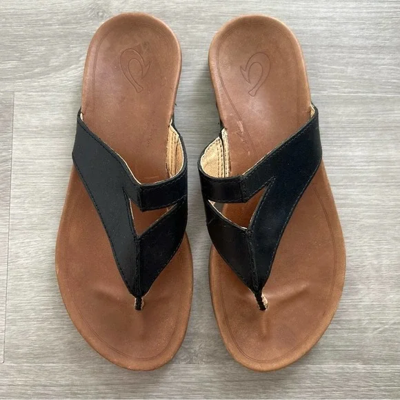 OluKai Shoes Olukai Lala Womens Black Tan Open Toe Leather Very well made.