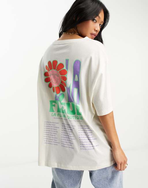 ASOS DESIGN textured oversized T shirt with flower LA Fleur graphic in cream Very well made.