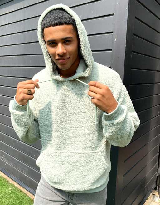 ASOS DESIGN Hoodie oversize imitation peau de mouton Vert clair Very well made.
