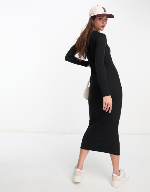 New Look Robe moulante mi longue en jersey encolure d gag e et manches longues Noir Very well made.