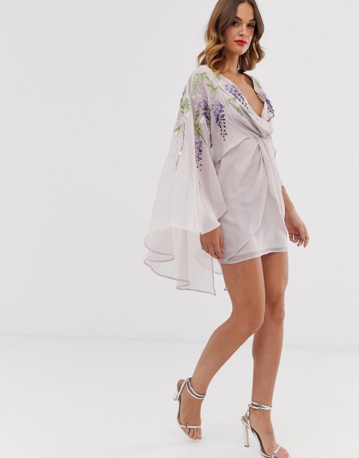 ASOS DESIGN Robe cape courte avec tra ne brod e Very well made.