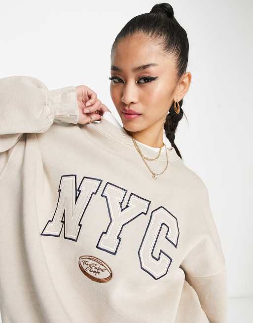 Pull Bear NYC oversized sweatshirt in ecru Very well made.