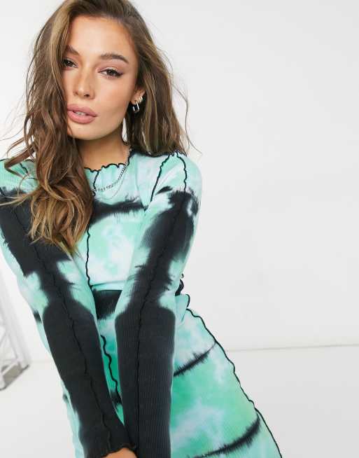 Bershka tie dye exposed seam printed dress in green Very well made.