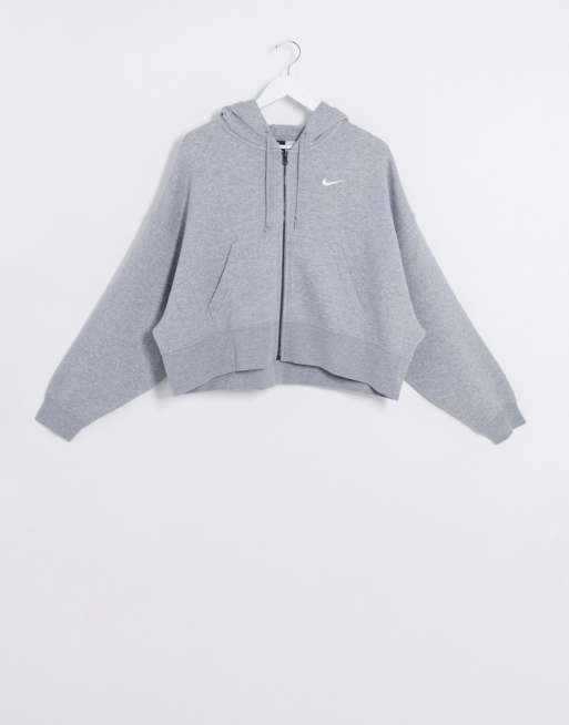 Nike mini swoosh oversized cropped gray zip through hoodie Very well made.