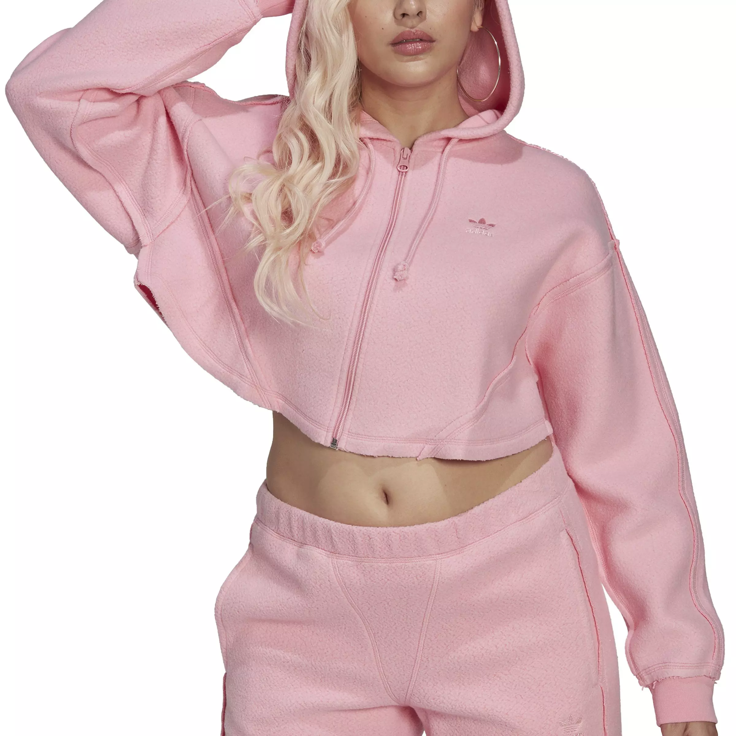 adidas Women s LOUNGEWEAR Crop Full Zip Hoodie Pink Hibbett Very well made.