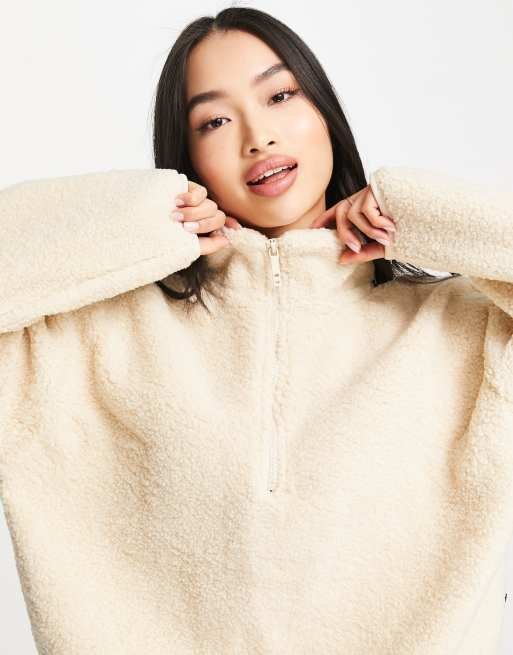 Cotton On crop fleece zip up jumper in cream Very well made.