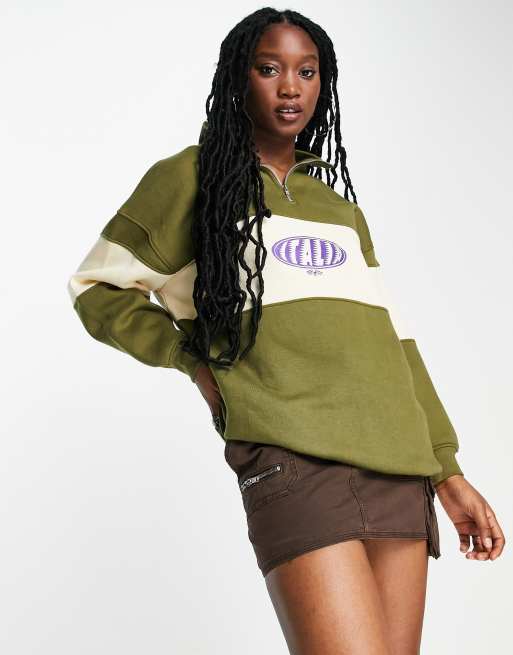Daisy Street funnel neck half zip sweat in khaki ASOS Very well made.
