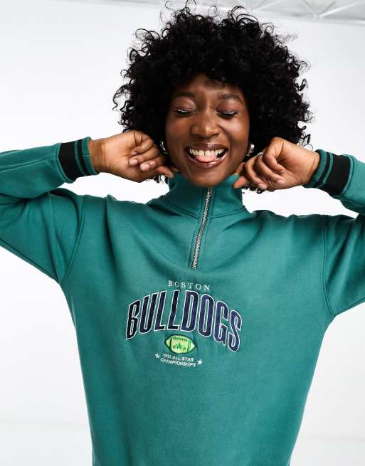 Daisy Street half zip sweatshirt with bulldogs graphic in washed green Very well made.
