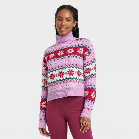 Women s Argyle Graphic Sweater Purple XS Very well made.