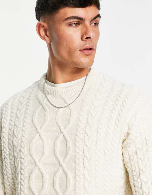 New Look relaxed fit cable crew neck sweater in off white Very well made.