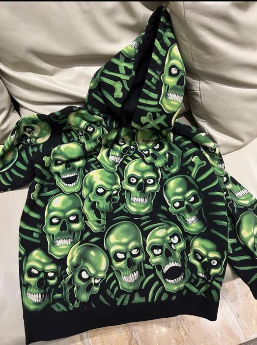Supreme Skull Pile Hooded Sweatshirt Printed Hoodie Green Very well made.