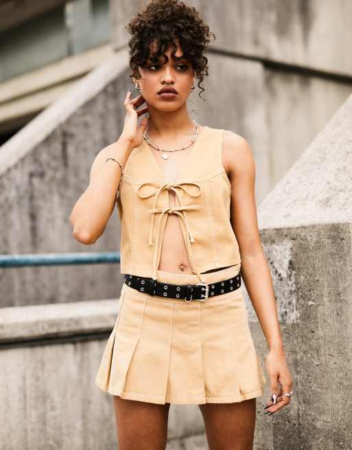 ASOS DESIGN Mini jupe d ensemble pliss e Taupe Very well made.