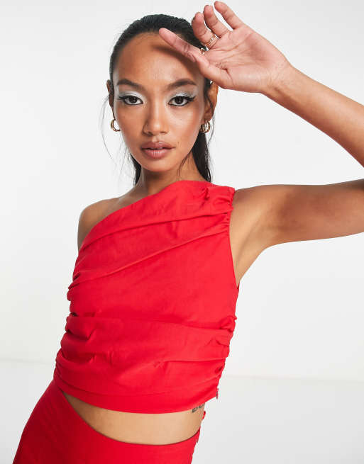 Vesper one shoulder ruched crop top in red part of a set ASOS Very well made.