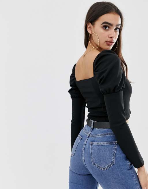 ASOS DESIGN long sleeve top with square neck and puff sleeve in Very well made.
