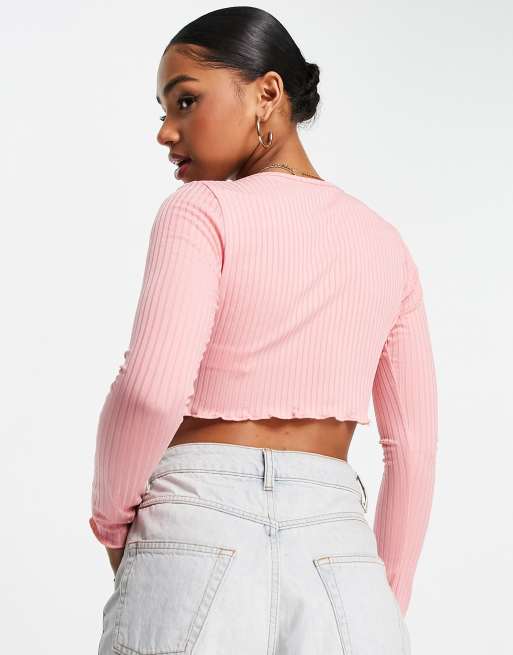 Ribbed Button Down Crop Cardigan Knitted Top Pink Lily Lulu Fashion Very well made.