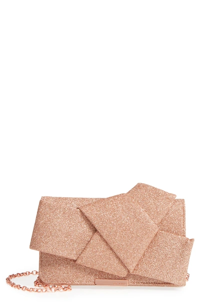 Ted Baker Fefee Glitter Knotted Bow Clutch Pink In Rose Gold Very well made.