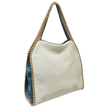 BIG BUDDHA Grayson Pearl Grayish Tan Womens Purse Gold Beads Large Faux Leather Very well made.