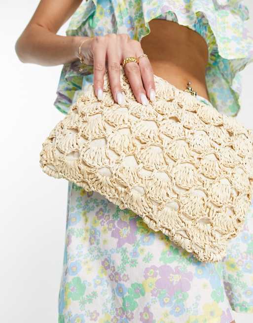 Accessorize clutch bag in straw crochet design Very well made.