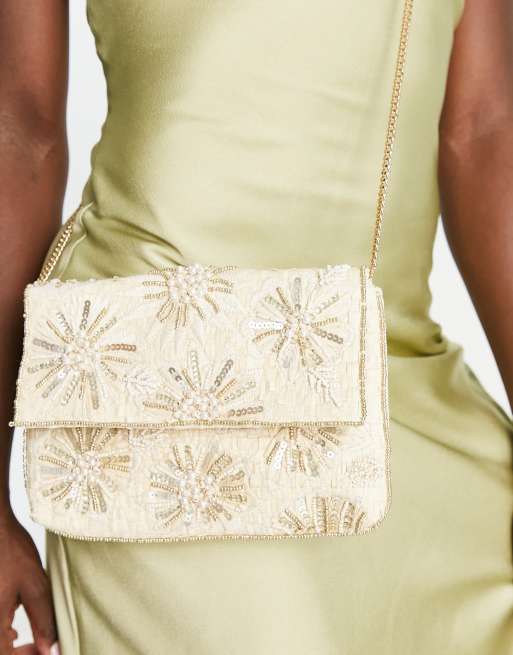 Accessorize mini clutch bag in cream beaded straw Very well made.