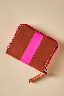 Clare V. Zip Wallet Natural with Neon Pink Stripe Very well made.