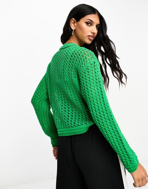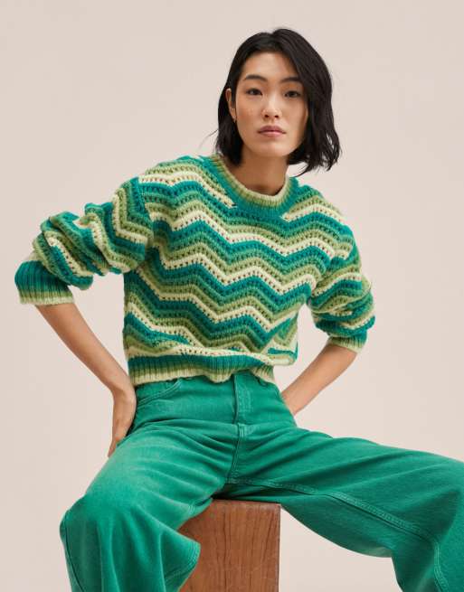 Mango Pull court en maille torsad e manches longues Vert ASOS Very well made.