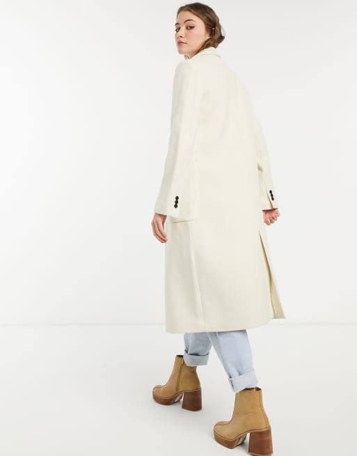 Stradivarius long double breasted coat in ecru ASOS Very well made.