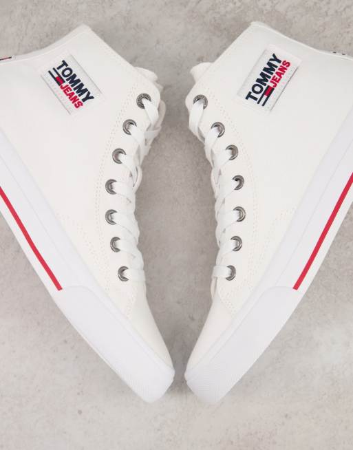 Tommy Jeans lace up logo canvas high top trainer in white Very well made.