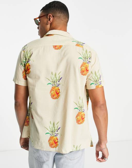 Selected Homme revere short sleeve shirt with pineapple print in beige Very well made.